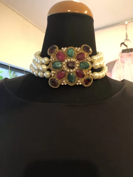 チョーカーに仕立てた ピアスとのセットアップをポイントに