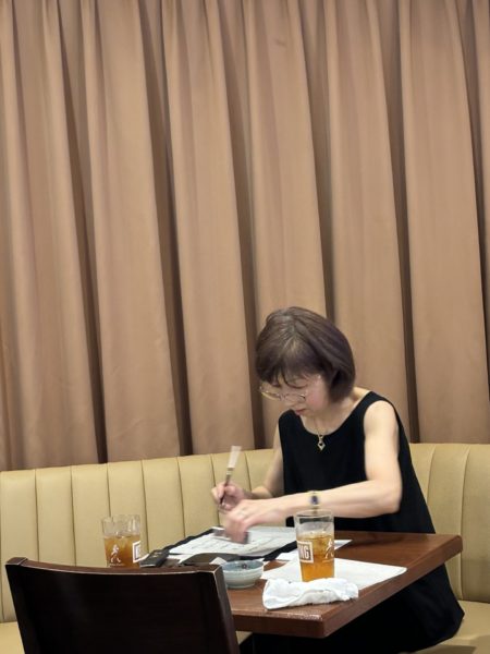 青柳雛先生に希望のお手本を書いていただき お稽古体験の後は