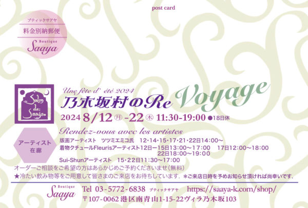 乃木坂村のReスタートいたしました😊 2024 8/12 乃木坂Saaya.からの最新情報ブログ Fleuris Reborn ツツミエミコさんの音絵楽 乃木坂村のRe URLをコピーしました! RE voyage イベント こんな小物も ㊗️ベルサイユのばら大劇場千秋楽 関連する記事 雪組さんの新人公演観せていただきました 2026/1/30 L’EQUIPE NOGIZAKA PRESENTS VOL.2 立春大吉を寿ぐ午餐会 2026/1/30 立春大吉のギフト 2026/1/27 春をちょっと感じたくて🦋 2026/1/24 美しいデザインのカシミヤコレクションをコーディネートで纏う 2026/1/23 ふわふわに癒されて 2026/1/17 Saaya. Meets Cashmikaコレクション♥️をコーディネートで 2026/1/14 Mysaayaジュエリーで🌙🌕🌟をオーダー 2026/1/11