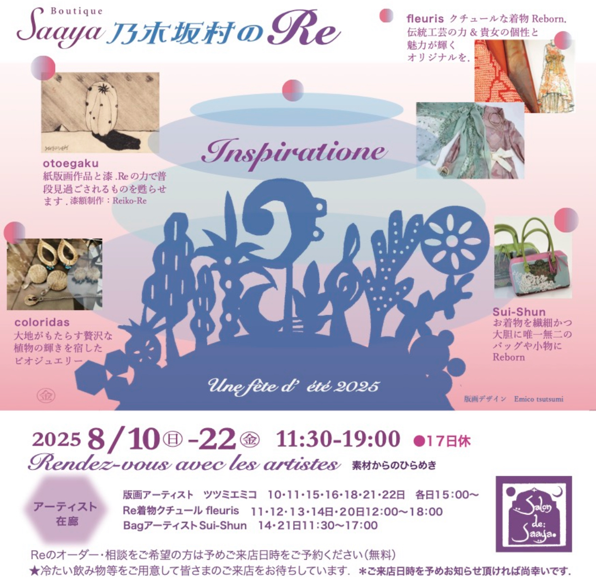 今年も開催いたします!乃木坂村のRe 2025 8/05 素材から始まる 今ここからの 新たな世界へ 乃木坂Saaya.からの最新情報ブログ 乃木坂村のRe URLをコピーしました! 美味しうございました🍑 Boutique Saaya 乃木坂村のRe 関連する記事 雪組さんの新人公演観せていただきました 2026/1/30 L’EQUIPE NOGIZAKA PRESENTS VOL.2 立春大吉を寿ぐ午餐会 2026/1/30 立春大吉のギフト 2026/1/27 春をちょっと感じたくて🦋 2026/1/24 美しいデザインのカシミヤコレクションをコーディネートで纏う 2026/1/23 ふわふわに癒されて 2026/1/17 Saaya. Meets Cashmikaコレクション♥️をコーディネートで 2026/1/14 Mysaayaジュエリーで🌙🌕🌟をオーダー 2026/1/11